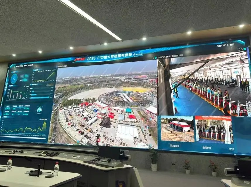 3月21日上午9点,嘉定融媒体记者在区城运中心指挥大厅看到,“2025 F1中国大奖赛服务保障场景”的页面上实时刷新着数据,道路实况、入场客流、停车管理等信息一目了然。