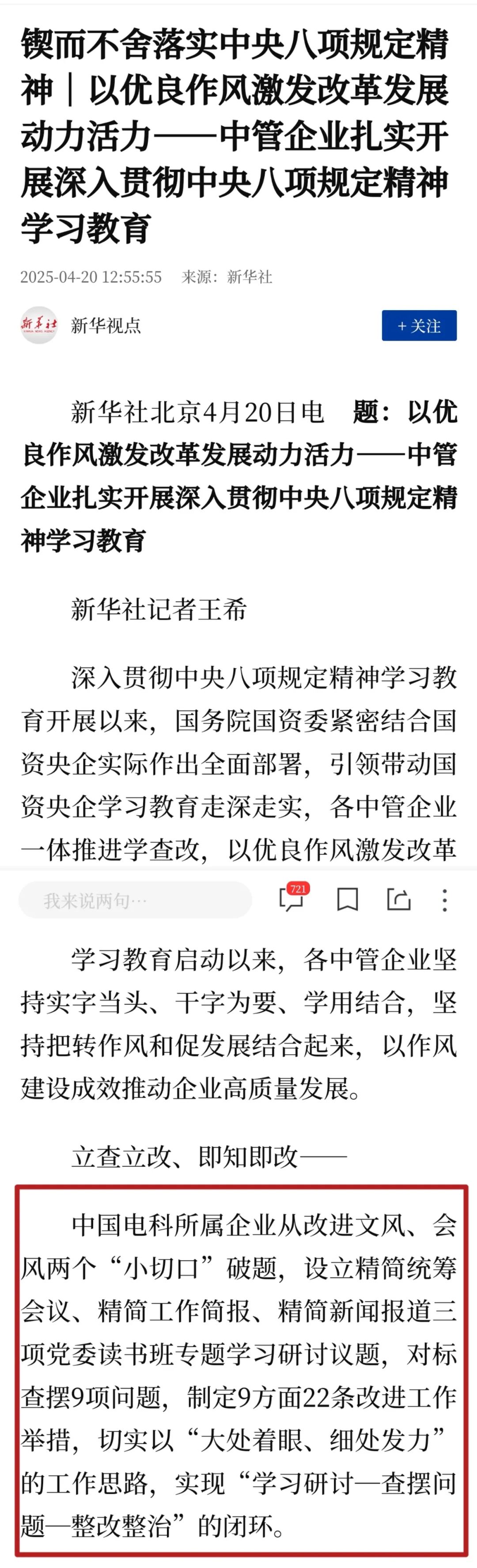媒体聚焦 | 中国电科:扎实开展深入贯彻中央八项规定精神学习教育