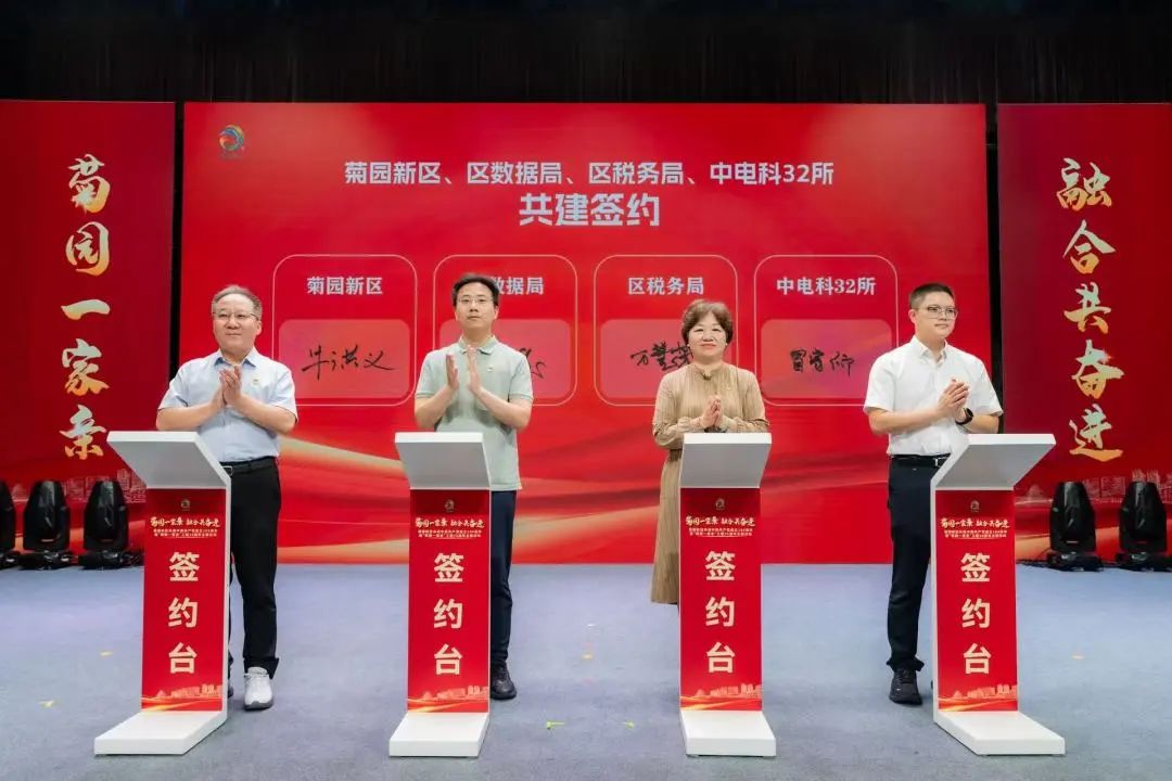 嘉定区委常委、组织部部长姚卫华,嘉定区委常委、副区长朱效洁,中国科学院上海硅酸盐研究所党委书记王东,中电科数字科技(集团)有限公司党委书记、董事长江波,中国科学院上海光学精密机械研究所党委委员、纪委书记彭芳,中国工程物理研究院上海激光等离子体研究所党委委员、副所长黄秀光,上海工艺美术职业学院党委书记王静,嘉定区科委科协党组书记、区科委主任徐慧,菊园新区区域党建共建联合会轮值理事长、嘉定城市发展集团有限公司党委书记、董事长冯根,上海嘉加(集团)有限公司党委书记、董事长管育民,上海地铁第二运营有限公司党委书记、副总经理邹松,菊园新区党工委书记陈懿,菊园新区党工委副书记、管委会主任张玉婷,菊园新区人大工委主任冯正局等领导出席活动。
