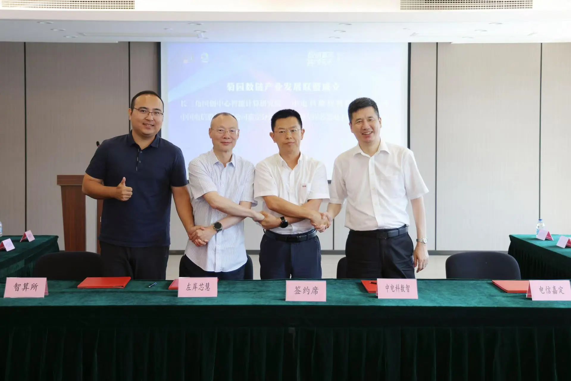当天,长三角国创中心智能计算研究院、中电科数智科技有限公司、上海左岸芯慧电子科技有限公司、中国电信股份有限公司嘉定分公司作为企业代表成立“菊园数链产业发展联盟”,旨在推动数字经济与产业链深度融合,培育数链产业生态,提升区域数字产业核心竞争力。