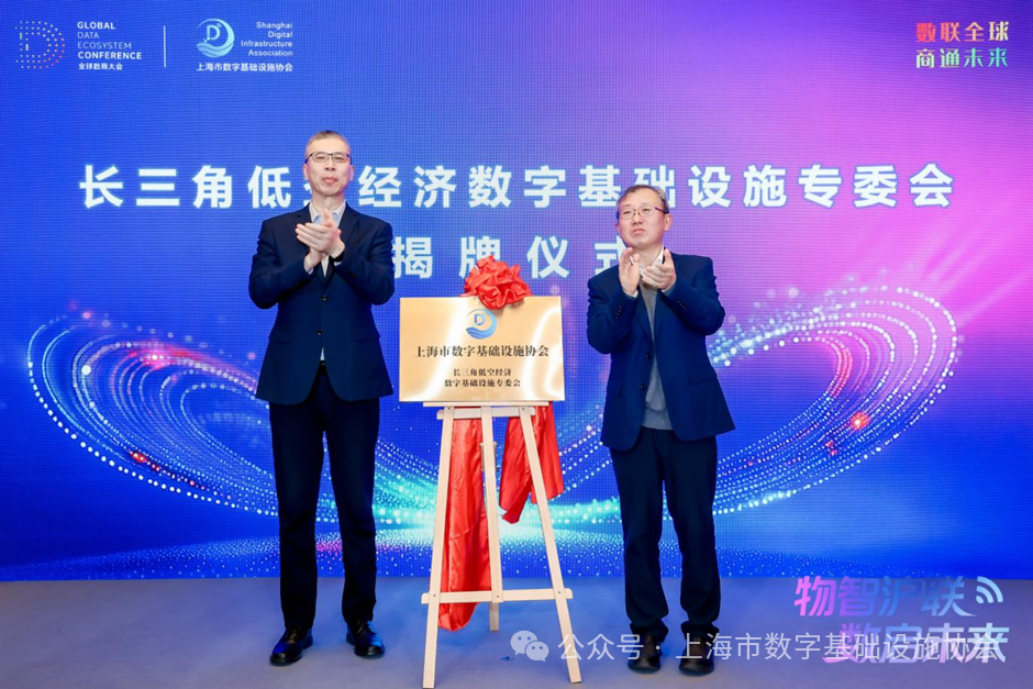 作为论坛的重磅环节,“长三角低空经济数字基础设施专委会” 正式揭牌成立。上海市数据局钱晓、上海市通信管理局凌坚共同上台为专委会揭牌,标志着长三角地区低空经济数字基建领域开启协同发展、资源整合的全新篇章。