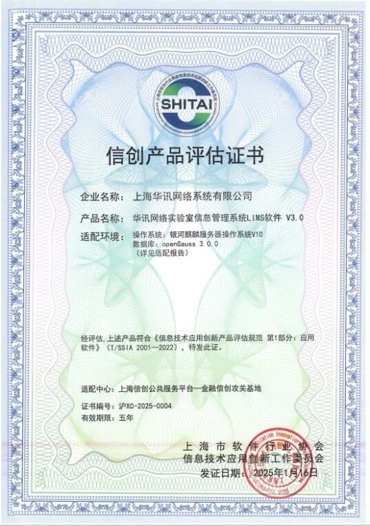 华讯网络实验室信息管理系统 LIMS 软件已获得软件著作权和信创产品证书,为行业提供安全可信的技术保障。