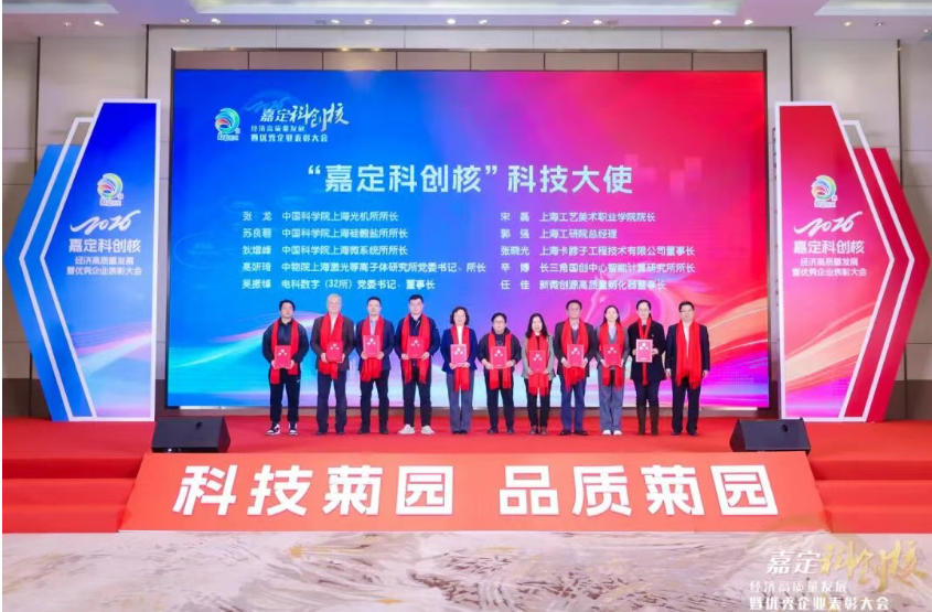 2026年3月6日,菊园新区召开“嘉定科创核”经济高质量发展暨优秀企业表彰大会。大会有力展示了过去一年“科技菊园”建设成果,同时吹响了全面推进“嘉定科创核”建设走向深入的号角,进一步凝聚了政院企合力,共绘科创发展新蓝图。嘉定区委常委、副区长朱效洁出席大会。数智科技(上海市“一网统管”市域物联网运营中心管理单位)长期扎根菊园,深度融入区域发展,获得“菊园新区现代服务业30强”荣誉,总经理姜鑫代表院所优秀企业上台发言。